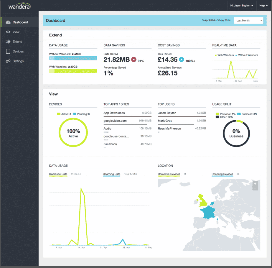 Founded in 2012, San Fran startup Wandera has taken in $53.5 million in funding so far to become (you guessed it…) the “undisputed leader in mobile security”. The founders are two brothers who previously founded a company called Scansafe that sold to Cisco in 2009, so well done there lads. One feature of their platform is that it allows you to monitor data usage across your firm as seen below:
