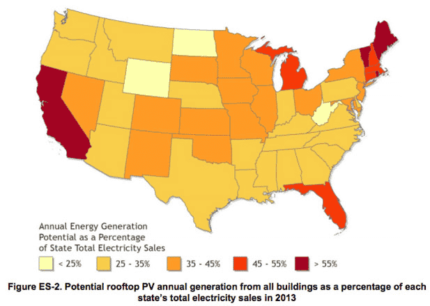 Every day we wake up to light and warmth provided to us by a massive ongoing nuclear explosion which we call the sun. It’s an extremely valuable resource considering the fact that it isn’t going anywhere for millions of years – that is until it consumes earth and kills us all. (This is why NewSpace is a pretty important area for humans to be focused on.) That sunlight we all bask in contains a great deal of energy that can be harnessed to provide electricity that we can then use for productive things like mining bitcoins. Here’s a look at just how much energy could be captured by simply installing rooftop solar solutions: