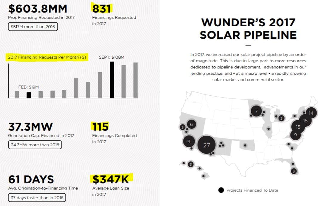 Founded in 2014, Boulder Colorado startup Wunder Capital has taken in $4.8 million to develop a platform that enables any accredited investor to build a portfolio of solar investment projects that have historically only been accessible to large institutional investors. The way it works is that Wunder Capital provides loans to various commercial entities for use in purchasing solar energy systems. The equipment being purchased acts as a form of collateral should there be a default on the loan. All of this translates into a product with the following structure: