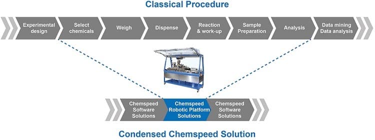 On the hardware side, there are numerous firms developing laboratory automation solutions. We previously looked at startup Opentrons which is developing a pipetting robot technology designed to automate experiments, but there are also plenty of private firms flying under the radar with lab automation technologies. One such firm is Nevada’s Hamilton Company which is selling automated liquid handling workstations and sample management systems. The automated chemistry systems of Switzerland’s Chemspeed Technologies ‘condense’ many instrument capabilities into one platform, thereby simplifying the operations required.