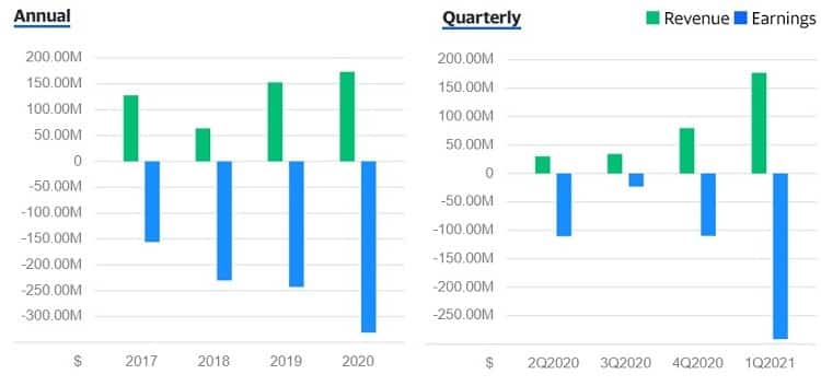 In Q1-2021, Amyris brought in more revenues than they did throughout all of 2020. Around 83% of last quarter’s revenues came from a single customer, DSM, which also happens to be an investor in Amyris. We would generally frown upon any single customer accounting for more than 10% of revenues. When a single customer can make or break your company, that’s not a good position to be in.