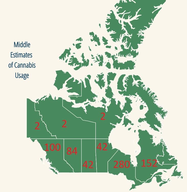 Even with all the marijuana they are selling, WEED still isn’t making a profit yet. They burnt through around $3.52 million in cash last quarter, but with $92 million in cash on hand they can go for some time without having to worry about raising more money. What we’re more interested in finding out is just what potential this company has. One way to answer ask this question would be to find out just how much weed Canadians smoke. To come up with that number we turned to The Office of the Parliamentary Budget Officer which actually calculates these numbers. The projected total resident consumption of dried cannabis for 2018 in tons by province is as follows: